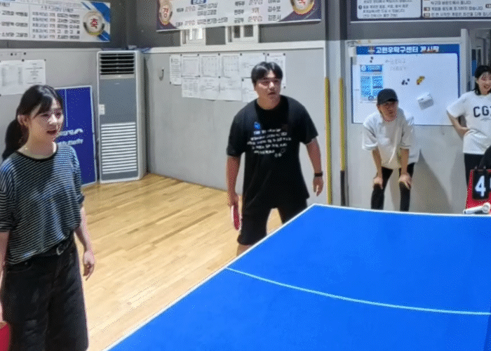 탁구 경기가 끝난 후 목말라서 죽기 직전