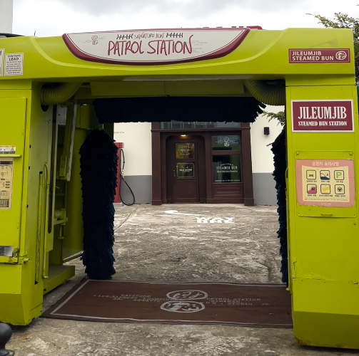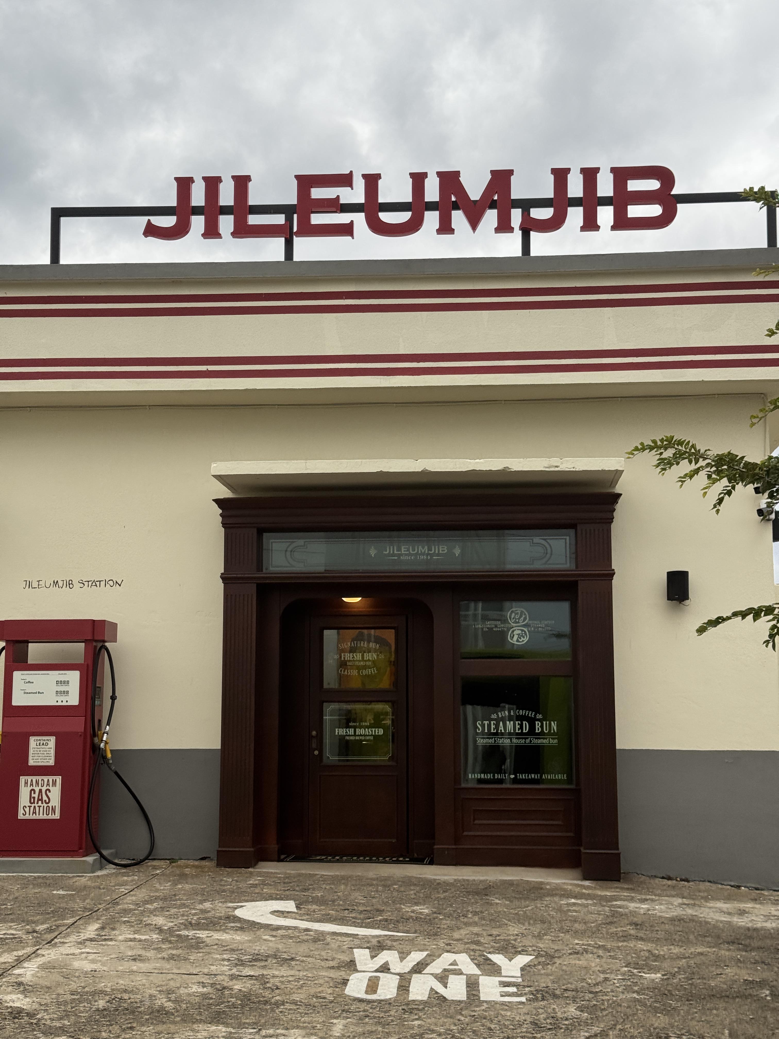 실제 주유소 뒤에 지름집이라는 카페가 있어요!
